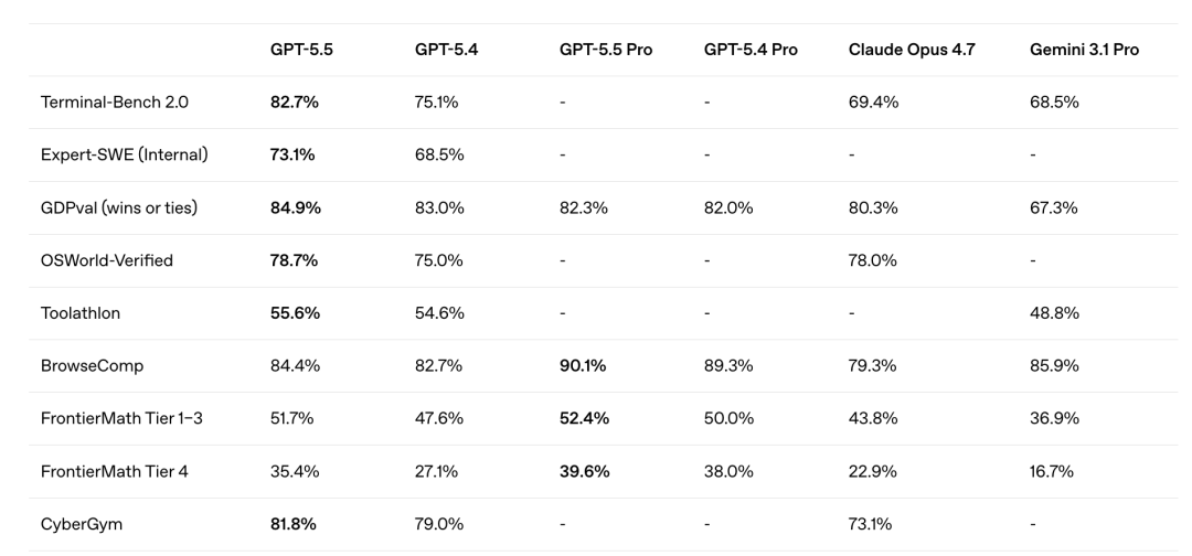 OpenAI 发布全新模型 GPT-5.5,智能程度最高