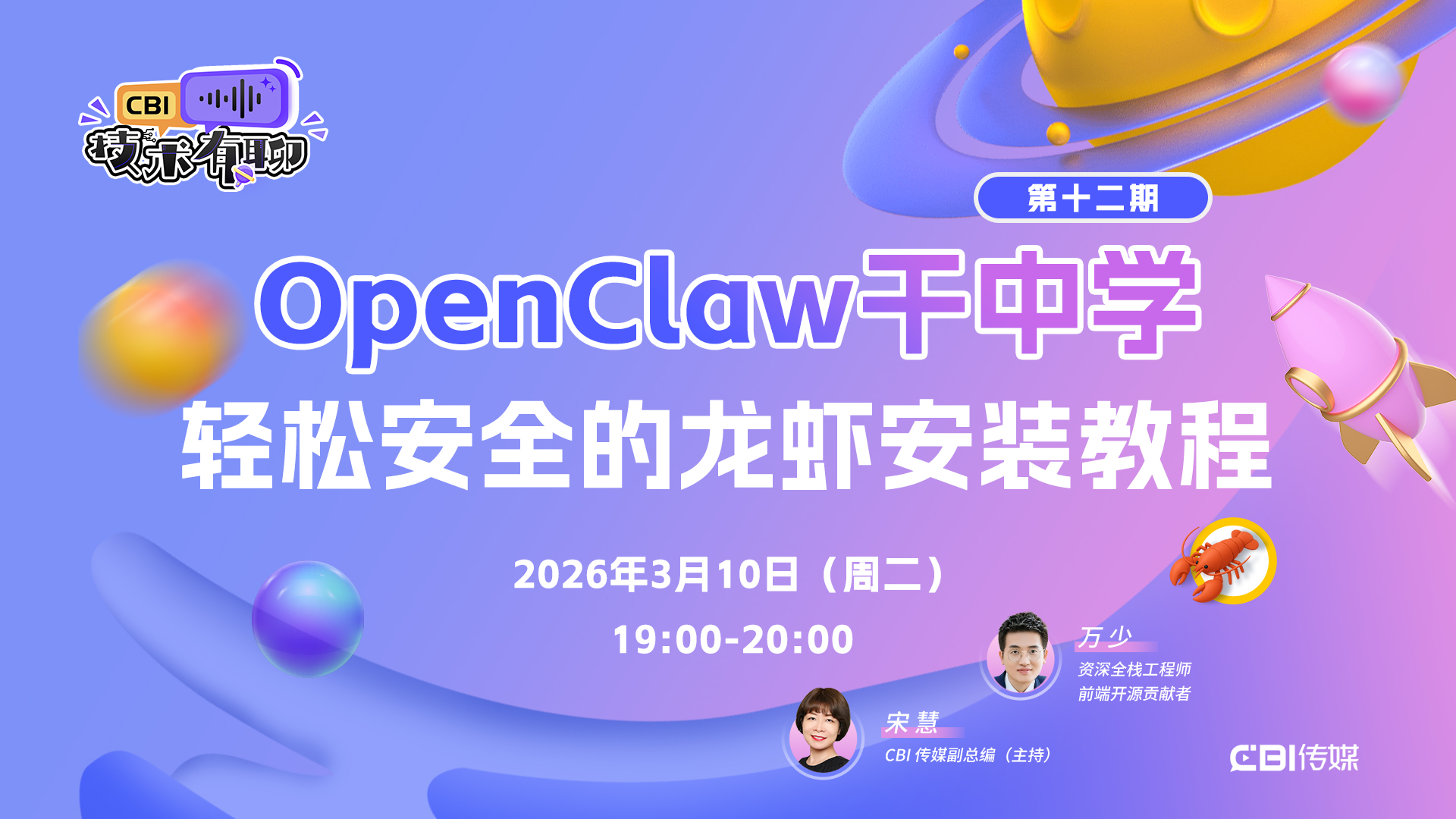本期主题——OpenClaw干中学,来看技术大神的养虾秘籍。我们邀请深度使用OpenClaw、乐于分享、有实战落地经验的麒麟子老师,来为大家分享养虾秘笈。欢迎收看、收听,说不定你也可以养一只龙虾玩玩,提高工作生活效率~~!