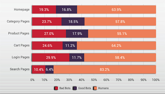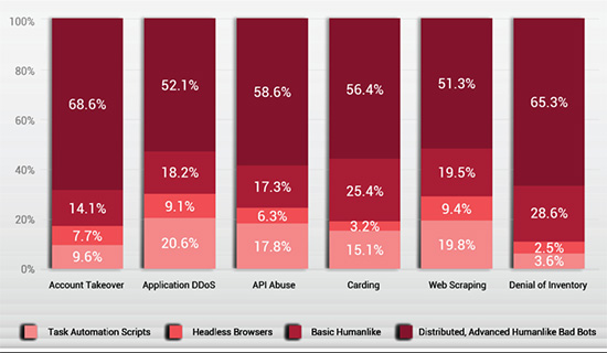 从结账页面的支付欺诈到产品页面的内容抓取(价格或产品信息)、优惠券抓取、库存劫持和购物车遗弃,以及包括针对首页或用户登录页面的暴力破解和证书填充等在内的各种形式的账户接管,恶意机器人程序攻击是跨所有应用的常见攻击。