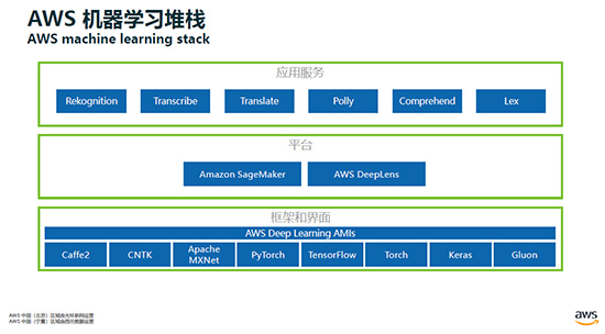 亚马逊AWS已经提供了丰富的机器学习和自动化工具,包括从基础层的机器学习引警,到中间层的机器学习平台,到上层的人工智能服务。对出版机构来说,最简单的直接使用AWS的机器学习服务,例如图像识别、语音转文字、自然语言理解、语音识别、语音合成、翻译等,出版机构可以直接采用这些服务,而将自己的精力集中在内容开发和用户运营上。