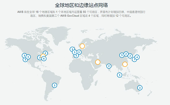 亚马逊AWS在全球的云基础设施,目前由18个区域和一个本地区域组成,总共有55个可用区。同时有132个网络接入点(包括121个边缘站点和11个区域性的边缘缓存点),分布在26个国家(地区)、59个城市,覆盖各大洲、190多个国家和地区的用户。而且,这些数字还在不断增长中。