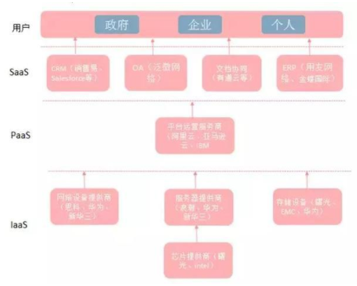 按照服务的类型,云计算一般可以分为IaaS(Infrastructure as a Service,基础设施即服务)、PaaS(Platform as a Service,平台即服务)、SaaS(Software as a Service,软件即服务),在服务的深入度上依次递增。在云生态中,IaaS能够满足基础网络设施和服务器的使用需求,PaaS能够为用户提供基础开发工具,而SaaS服务则能够直接满足客户应用软件的全部需求。