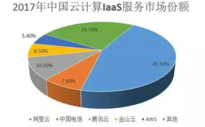 中国的IaaS市场,阿里占据半壁江山,从2015年的31%上升到2017年的45.5%。以腾讯为首的竞争者仍未放弃追赶。电信和联通为代表的电信运营商很难像阿里一样承受每个季度数亿元的亏损,市场份额逐步向腾讯和金山等互联网公司让渡。