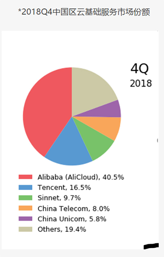 光环新网发展则更是如鱼得水,根据Synergy Research2018 Q4中国云基础服务市场份额排名,光环云9.7%在国内超过电信天翼云排名第三。在2019年Q1业绩预告中其净利润预计1.8亿元到2.1亿元,同比增长30.43%-52.17%。2018年前三季度财报,营收44.82亿,净利达到4.75亿,而这主要归功于云计算业务的快速增长。