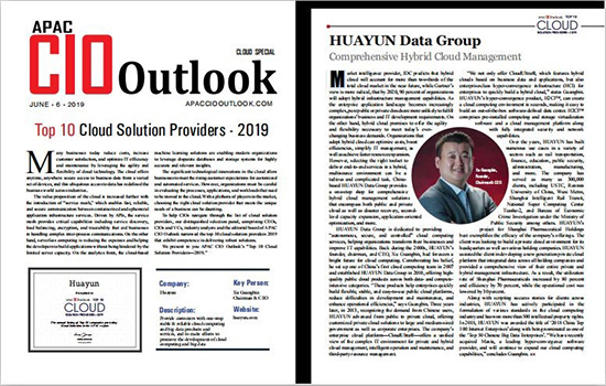 华云数据被APAC CIO Outlook杂志评为亚太区十大云计算服务提供商
