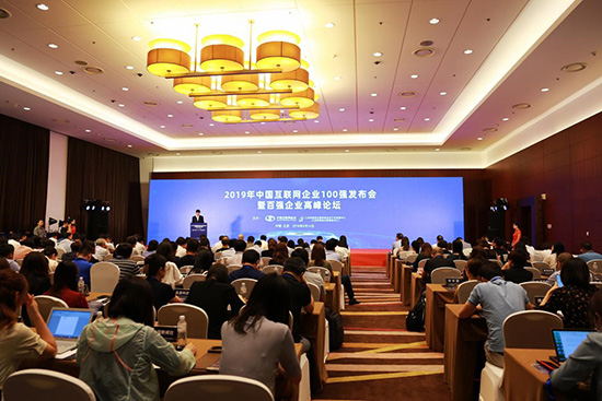 登台领取“2019年中国互联网企业100强”证书和奖状