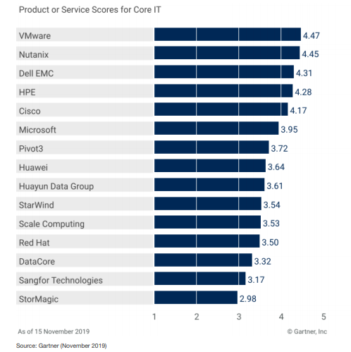 Gartner从五个核心维度对进入了《2019超融合魔力象限》的厂商进行了评估和排序,以帮助企业CIO在进行采购决策时更有针对性。