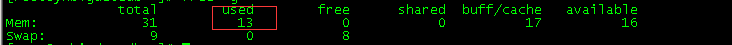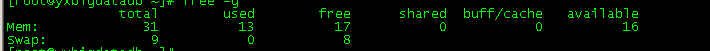 怀疑是系统缓存占用,于是重启了该云主机;但在重启云主机后还是一样的现象,查看内存使用的used项还是13G,空闲变为17G,如图三所示,。