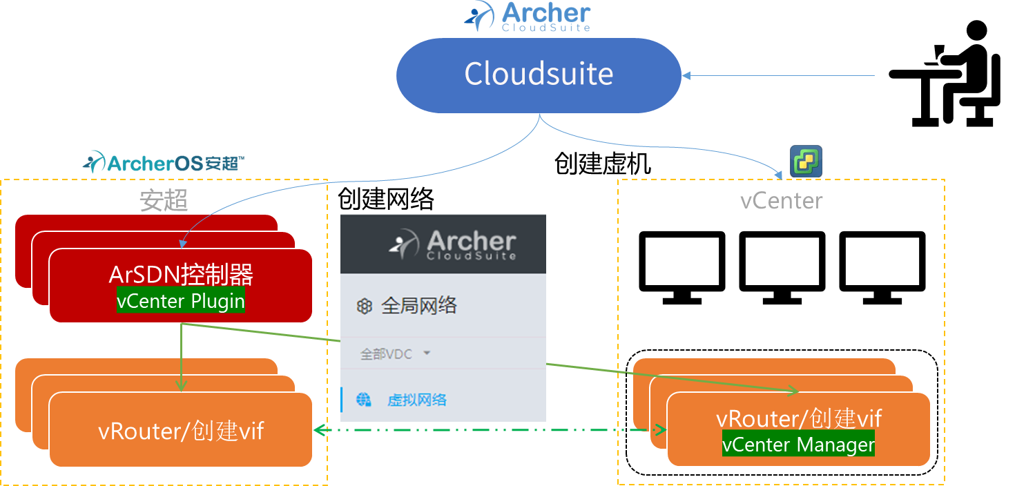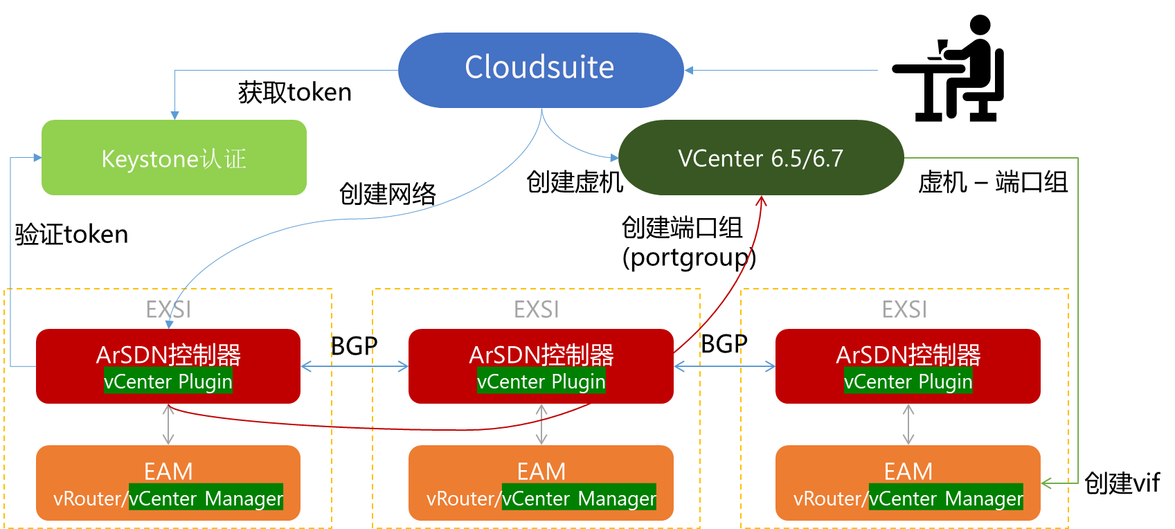 对于VMware,SDN的网络对应了VCenter上的portgoup。虚机创建流程还是依赖原来VMWare的流程,SDN会在相关EXSI后上启动对应服务来监控VMWare相关的事件,用以维护转发面agent上的端口,来保证转发面的正常功能。