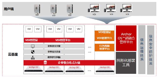 华云桌面云平台是基于云计算环境下推出的全方位桌面云平台。采用双核心设计可以同时提供对帧传输(VDI后端计算)与流传输( VOI前端计算 )多种云桌面交付方式。