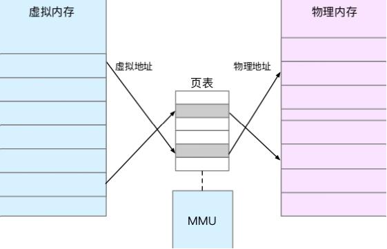 然而在实践过程中会产生各种各样的问题,若某个程序需要使用 4G 内存,而此时可用的物理内存小于 4G,这就导致程序不得不降低内存的占用。因此为了解决此类问题,现代 CPU 引入了 MMU(Memory Management Unit 内存管理单元)。MMU 的核心思想是利用虚拟地址替代物理地址,即CPU寻址时使用虚址,由 MMU 负责将虚址映射为物理地址。 MMU的引入,解决了对物理内存的限制。