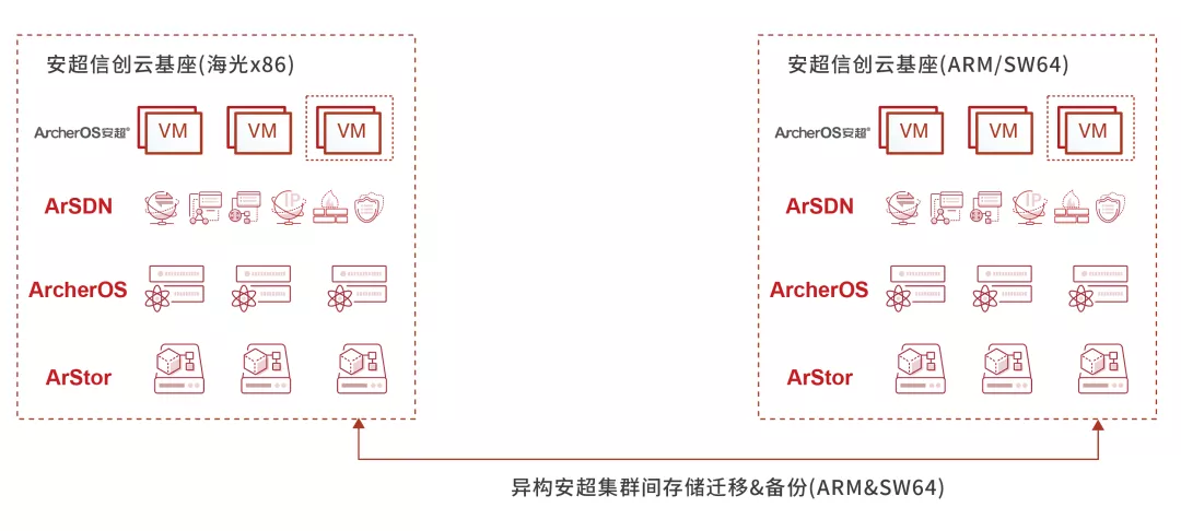 针对处理器是异构的安超集群,安超云基座解决方案可以跨CPU架构迁移存储数据,包括X86、ARM等,该功能具备如下特性: