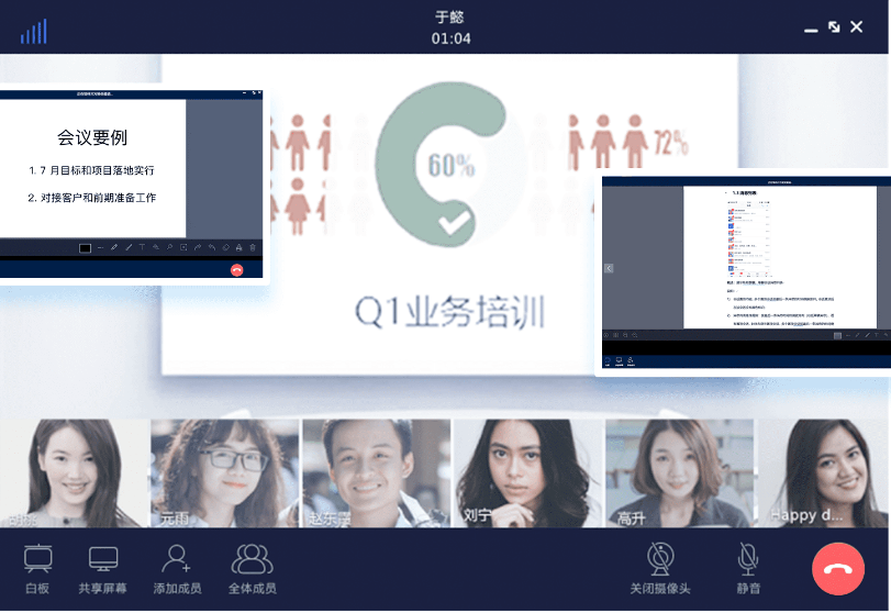 同时,融云通过集成第三方插件,支持白板、屏幕共享等常见会议工具,无需客户逐一对接第三方,便可高效、便捷地实现绝大多数会议功能。满足多部门政府工作人员即使异地办公,也能“身临其境”般的进行在线沟通。