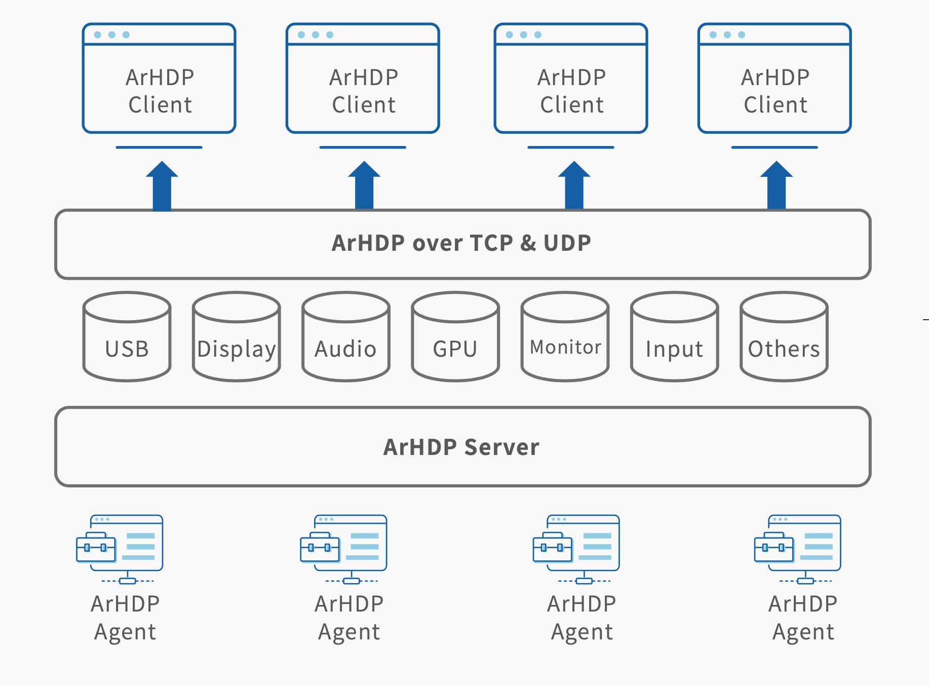 此外,ArHDP兼容多种GPU模式。在高密度并发场景下,通过GPU加速技术,可将桌面图像编转码能力转移到GPU上。降低CPU负载压力,提高办公场景下桌面的操作体验。为了能够满足3D软件的工作能力和效率,通过GPU直通技术,将物理GPU透传进桌面,由GPU完全负责对图像处理和视频的编、解码。同时,通过vGPU技术,将物理GPU 进行弹性切分,达到资源共享,灵活调用的目的,从而满足中、高级端3D设计场景极致体验。
