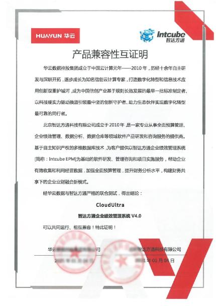 日前,华云数据与智达方通完成产品兼容互认证。本次兼容性互认证经华云数据与智达方通联合测试得出:华云数据CloudUltra与智达方通企业绩效管理系统产品相互兼容,系统功能稳定运行,产品体验良好。