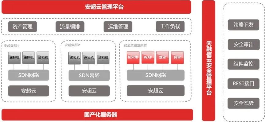 伴随国家持续加大对科技创新的支持力度,信创产业加速在更多行业落地。近期,天融信云安全资源池和安超云的云平台进行深度融合,打造信创“云+安全”融合解决方案,为客户云上业务系统提供高效灵活的安全检测能力,满足客户云环境安全防护和合规需求。
