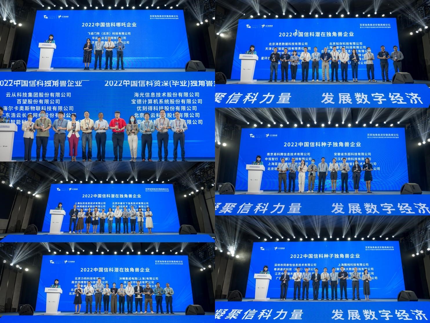 “榜单”和“报告”深入揭示了我国数字经济强劲崛起、信息技术应用创新产业迅猛发展背景下,深耕于信息技术应用创新各个细分赛道的“高潜力”、”高成长”、“高价值”企业群体的格局状况,共有207家企业成功入选“中国信科独角兽及新物种榜单“。百位信科独角兽企业代表来现场接受颁奖。