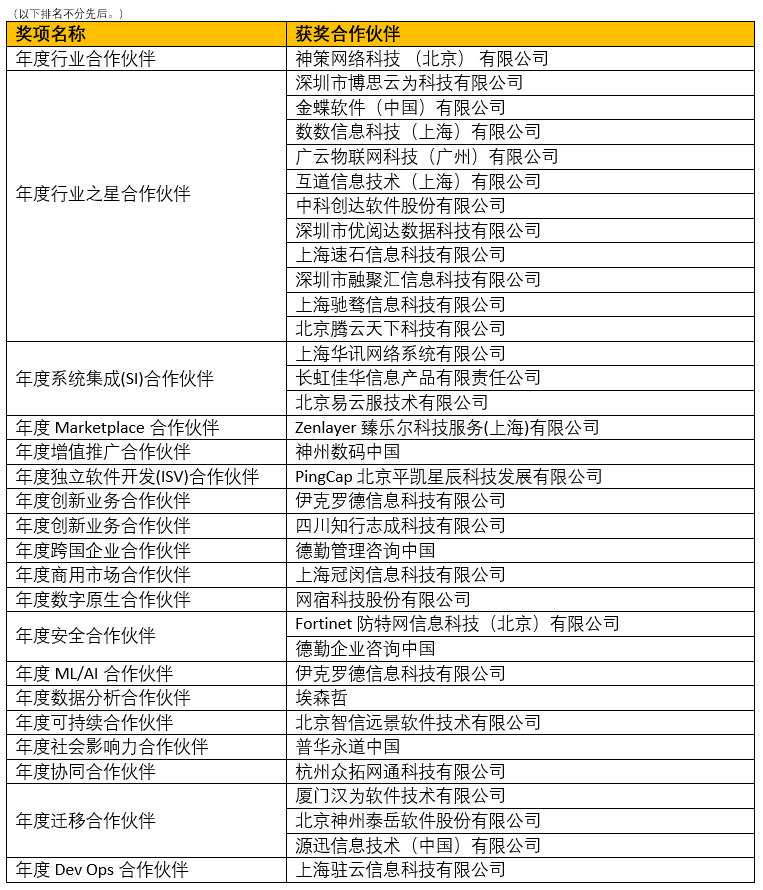 亚马逊云科技还为34家合作伙伴颁发了2022年度奖项,涵盖软件开发、系统集成、增值推广、创新业务、安全、迁移、人工智能/机器学习、数据分析、DevOps、可持续、社会影响力等19个类别,旨在表彰、展示各位合作伙伴在各领域数字化转型过程中取得的优秀成绩。