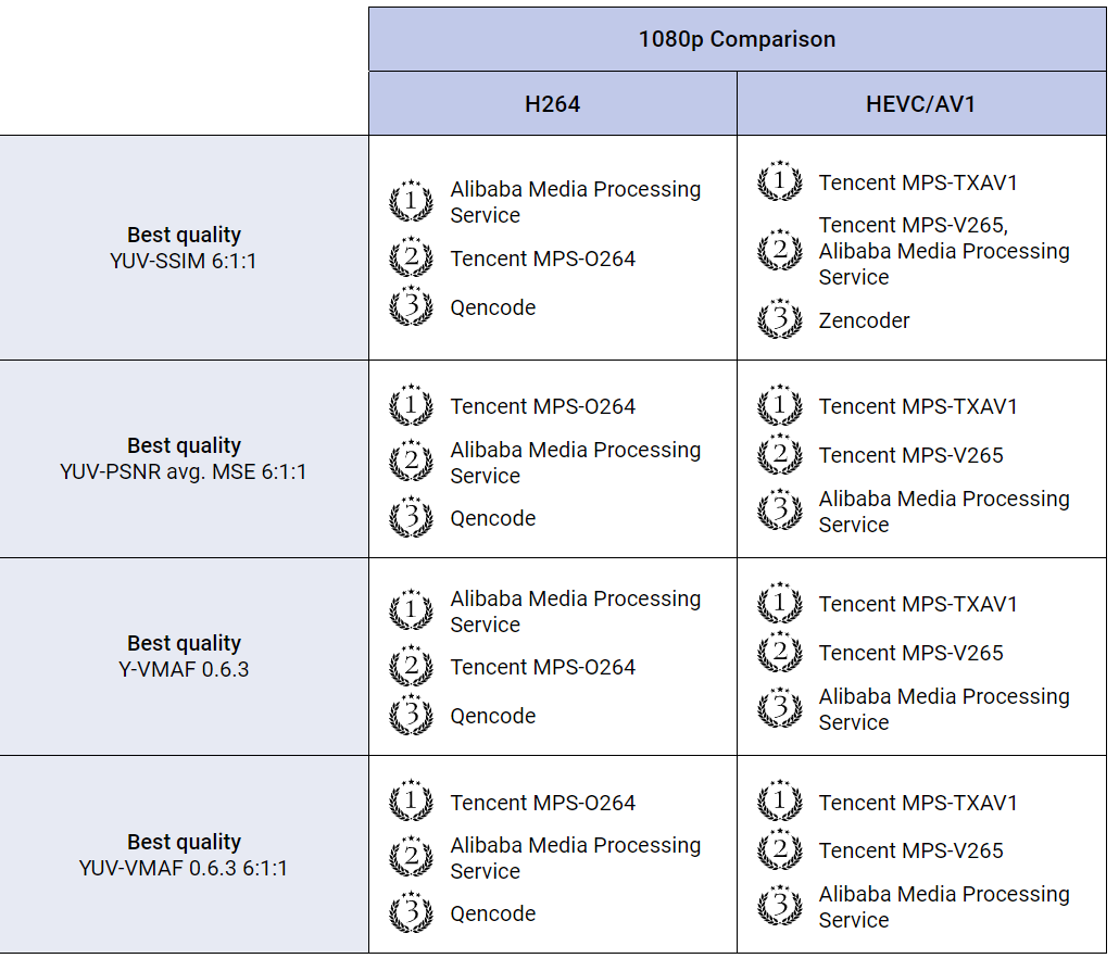 4月15日,莫斯科国立大学举办的MSU云端视频转码比赛成绩揭晓,腾讯云媒体处理产品MPS(Media Processing Service)在众多国际厂商中脱颖而出,获得H264、HEVC/AV1赛道21项评测第一。其中,TXAV1/V265编码器在所有分辨率测试中,包揽PSNR、SSIM和VMAF所有客观指标以及主观指标第一。同时,腾讯O264编码器也获得该赛道6项指标第一。