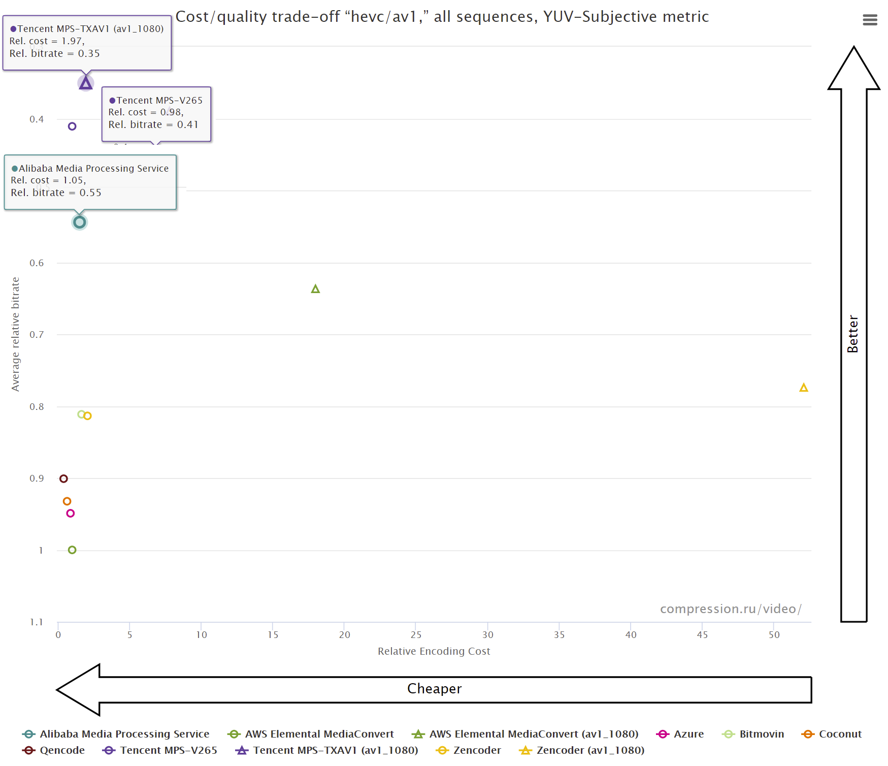 腾讯也在不断优化新一代AV1转码能力,本次比赛的主观赛道结果表明,在相同主观质量下,TXAV1可以比其他厂商节省至少35%的码率。