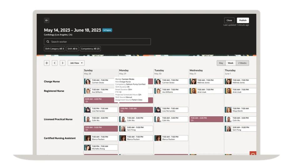 Oracle 宣布在 Oracle Fusion Cloud Human Capital Management (HCM) 中推出新的员工管理功能,以帮助医疗卫生机构适应不断变化的劳动力市场、满足多变的客户需求以及提高人才吸引力和员工保留率。新功能 Oracle Workforce Scheduling 和 Oracle Workforce Labor Optimization 在一个统一的云技术平台上打通业务和电子健康记录 (EHR) 数据,帮助医疗卫生机构满足高级调度和员工需求。