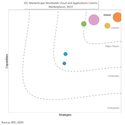 日前,领先的IT市场研究和咨询公司IDC发布《IDC MarketScape:全球云计算和以应用为中心的市场供应商评估》1报告,亚马逊位列“领导者”类别。报告指出,“亚马逊云科技Marketplace为买卖双方提供了无缝的采购和部署体验”。IDC指出:“持续创新一直是亚马逊云科技Marketplace快速推出新功能和新特性的标志,以满足不断变化的客户需求”。