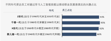 不同年龄段的在职人员都希望学习人工智能技能以加速职业发展