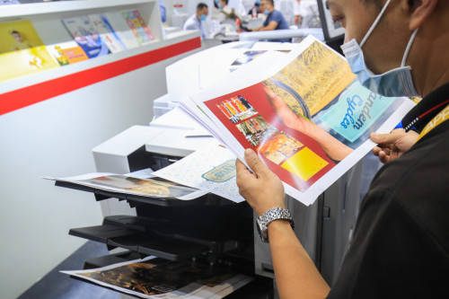 现场观众端详由佳能varioPRINT 140系列输出的高品质样页