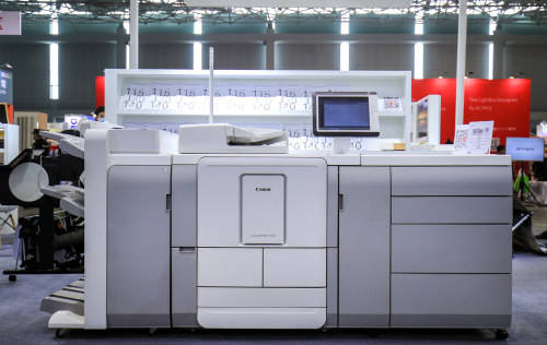 共同展出的生产型打印机imagePRESS C710支持的介质种类和数量在目前的中量级单张纸彩色印刷产品中有出色表现,支持1,300毫米横幅打印功能,最高可支持350g的厚纸打印,并且不会牺牲打印速度。搭配该系列使用的佳能弹性转印带,墨粉转移的效率更高,可广泛适用于长幅海报、封面、长版折页广告、宣传单、小册子、高级名片、贺卡邀请函和包装盒等应用。