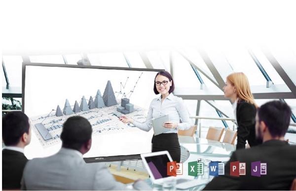 会议平板集投影仪、PC、电视、电子白板、音箱、广告机、视频会议等多种设备功能于一体,可以满足各种使用场景,同时产品还支持“高速书写”操作、“会议记录”速存、异时异地协同等“独属科技”。