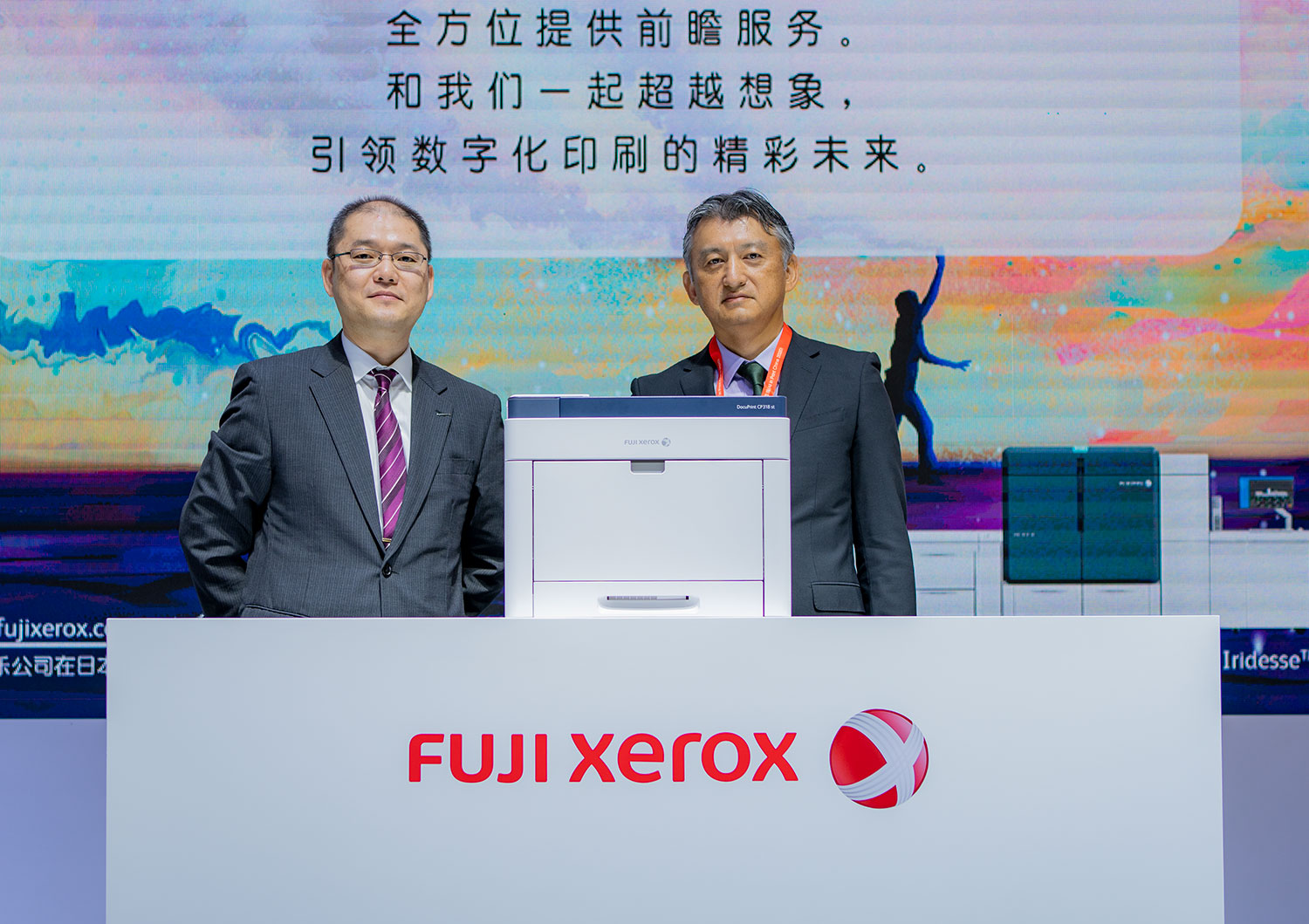 富士施乐中国(有限)公司市场部高级总监每田尚、总监古贺吉弘共同为新品揭幕。