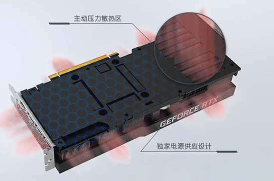 我们充分认识到游戏玩家对图像性能关注,因而我们找到了一种独特的散热方法,让玩家能够在需求迫切时进一步飙升性能。我们优秀的工程团队设计出一款定制显卡,充分考虑了散热、气流和效率: