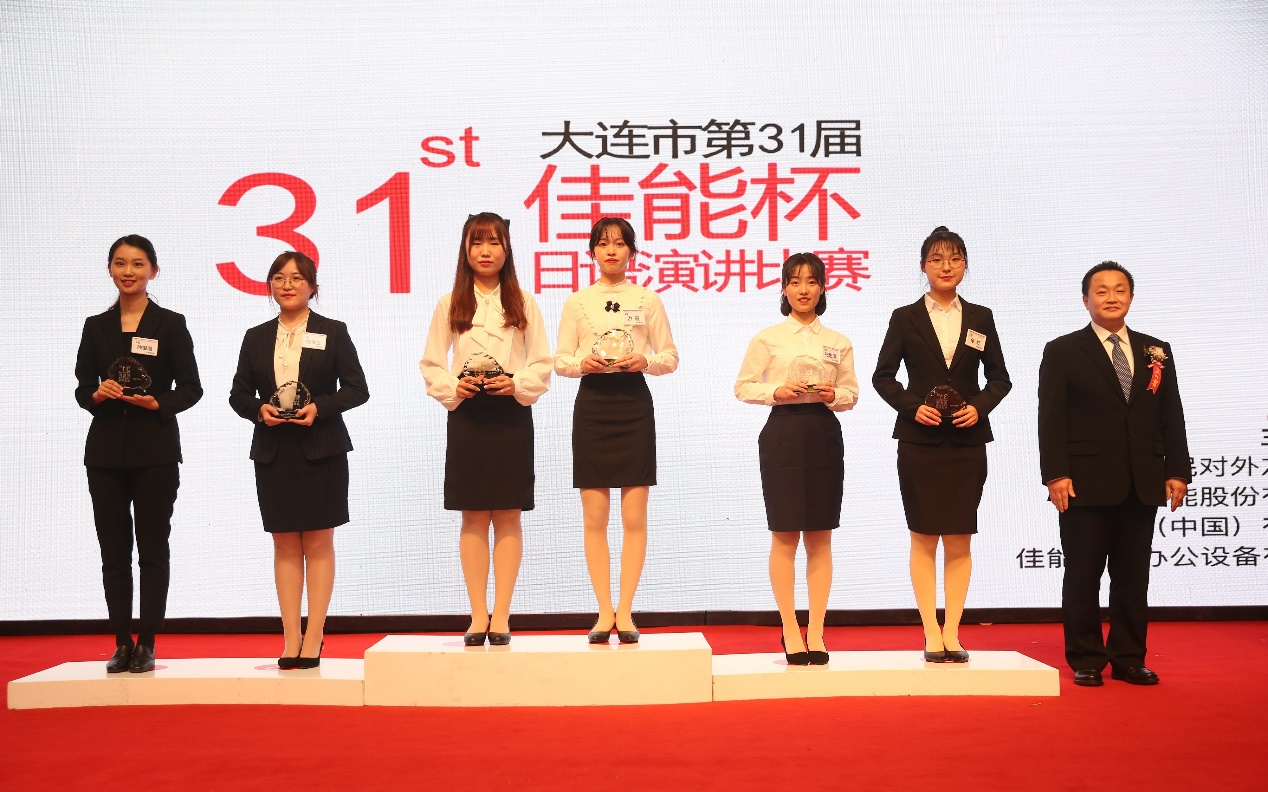 2020年12月2日,第31届“佳能杯”日语演讲比赛在大连成功举办。经过激烈角逐,来自大连外国语大学的金秋红和洪霞双双斩获本届赛事大学日语专业组一等奖,来自大连理工大学的袁江淼获得了大学日语非专业组一等奖。该项赛事自1990年启动以来,已连续举办31年,吸引了超过16万名参赛者参与,并支持近100名优秀选手赴日短期研修,是促进中日两国民间文化交流的重要纽带。今年新冠疫情肆虐全球,该项赛事虽然推迟了举办时间,但仍然在今年圆满举行,充分体现了中日之间“山川异域、风月同天”的友好情谊。大连市市长陈绍旺、佳能股份有限公司副总裁执行董事小泽秀树等嘉宾亲临现场,共同见证了比赛盛况。