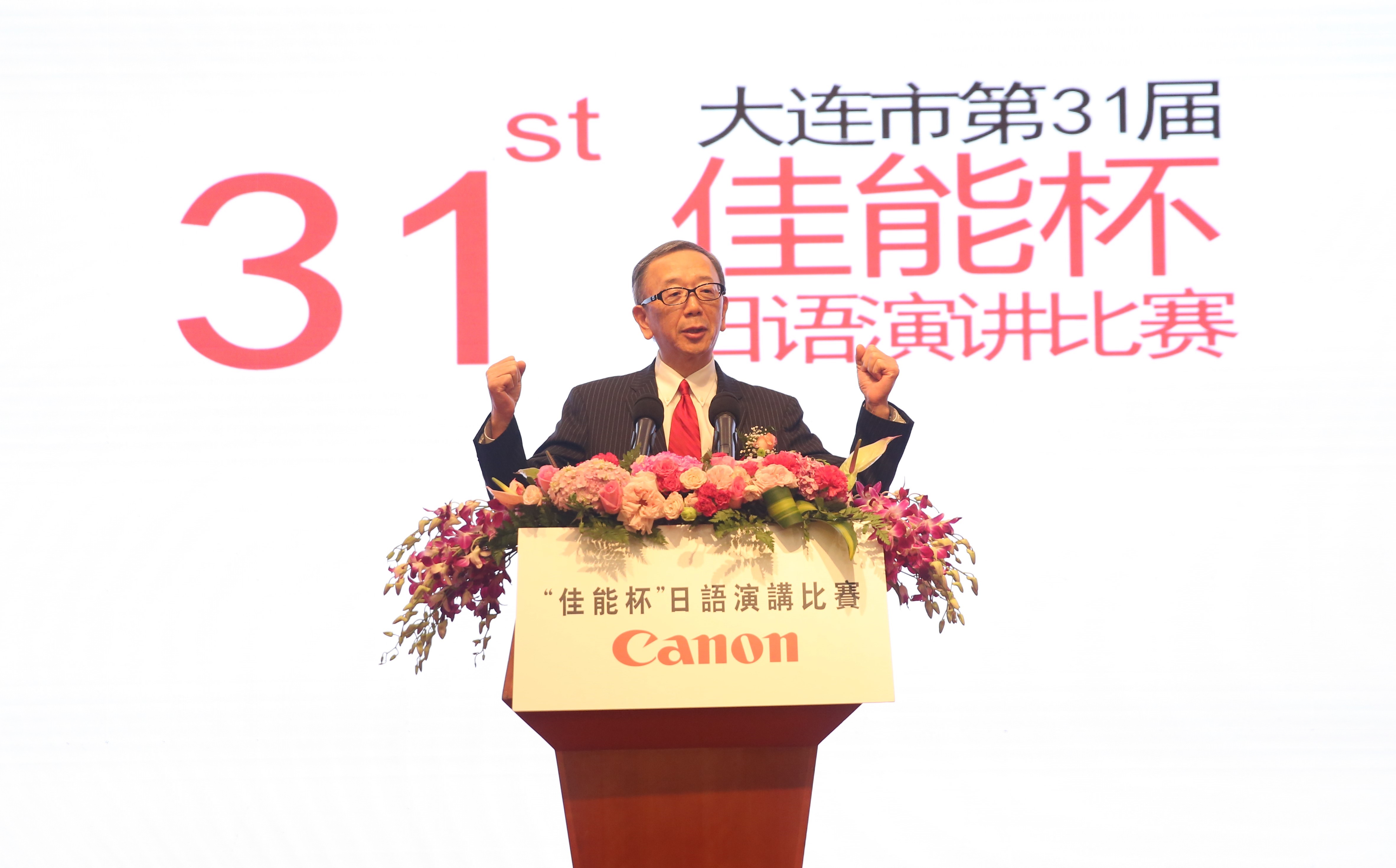 佳能股份有限公司副总裁执行董事小泽秀树在开幕致辞中表示:“佳能很荣幸能够在大连市政府以及广大院校的全力支持下,将‘佳能杯’日语演讲比赛举办至今。这一赛事推动并见证了中日民间文化交流不断向前发展。即使今年情况特殊,佳能也希望积极开展更多企业社会活动,为增进中日两国友谊贡献力量。”