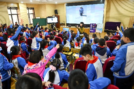第二个环节是由无境深蓝公益主讲人王小觅主持的珊瑚公益讲座,在学校的多功能厅展开。整个讲座主要针对的三年级小朋友。讲解了一些专业的珊瑚知识、海洋环保知识,为了增加讲座的趣味性,加入了互动环节:海洋生物“你画我猜”、有奖竞猜以及生态瓶的制作。学生们都踊跃参与。