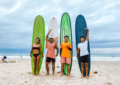 Justin接触冲浪是一个非常偶然的机会。朋友邀请他参加一次冲浪活动,当时的他已经来海南生活了三年,但是从来没有接触过类似的运动,出于好奇就去观摩了一次。但Justin立刻被冲浪时的激越和快意所吸引,便立刻决定加入俱乐部学习。第二天,当Justin第一次上课站在冲浪板上,那种美妙的感觉太令人兴奋,自那以后冲浪就一直伴随着他的生活。