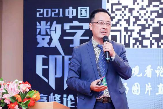 富士胶片商业创新(中国)图像传播服务部总经理田朝阳在数字印刷高峰论坛进行“印无止境 印创未来”主题演讲