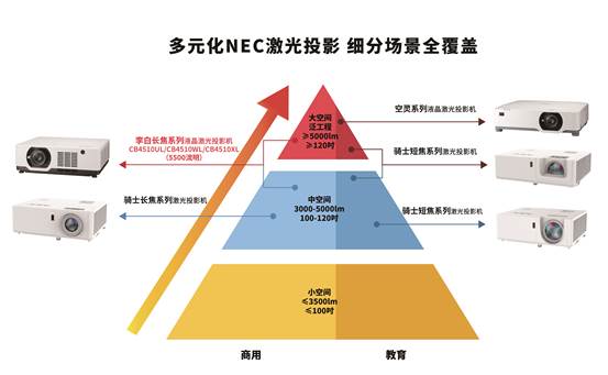 作为显示行业的领导者,NEC显示产品一直以前瞻性眼光布局产品市场。此次,李白系列液晶激光投影新品的推出,将和空灵系列、骑士系列完美组合,以三足鼎立之势全面“猎狩”3500-6000流明段行业应用需求,实现NEC激光投影在商用、教育、泛工程市场的全覆盖。