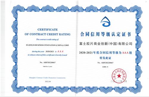 近日,上海市合同信用促进会公布了“2020至2021年度上海市守合同重信用企业”名单。富士胶片商业创新(中国)有限公司【原富士施乐(中国)有限公司】与富士胶片实业发展(上海)有限公司【原富士施乐实业发展(中国)有限公司】凭借良好的企业信誉和行业公信力,获评“上海市守合同重信用企业”,并被认定为最高级别AAA级合同信用等级企业。这是继富士胶片实业发展(上海)有限公司等三家企业获“2018至2019年度上海市守合同重信用企业”称号后,富士胶片商业创新在华企业再次荣获该荣誉。