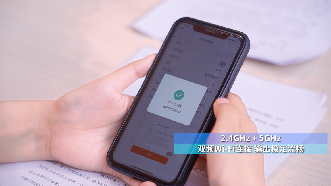 混合办公趋势下,BYOD成为主流选择之一,汇聚于共享办公区域的员工,往往会通过无线网络进行上网、办公、打印。奔图BM5100ADW对无线打印功能进行全新的优化升级,不仅支持扫码配网、扫码直连等极简的移动端配网方式,还支持2.4GHz、5GHz双频Wi-Fi,进而确保连接的稳定与高速传输。此外,通过“奔图打印”APP也可以轻松实现打印、复印、扫描等操作,极大地便利了移动办公。