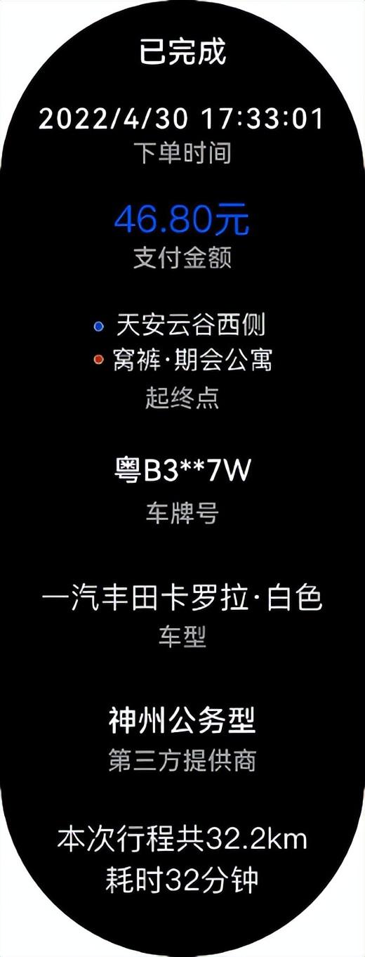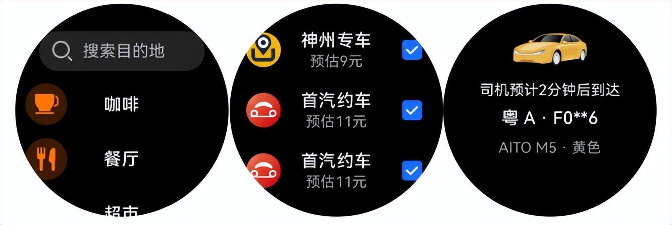 手表界面不仅可以显示车牌信息、车辆颜色、路线信息等基础信息,还能查看司机实时位置、预计行程时长等详细信息。