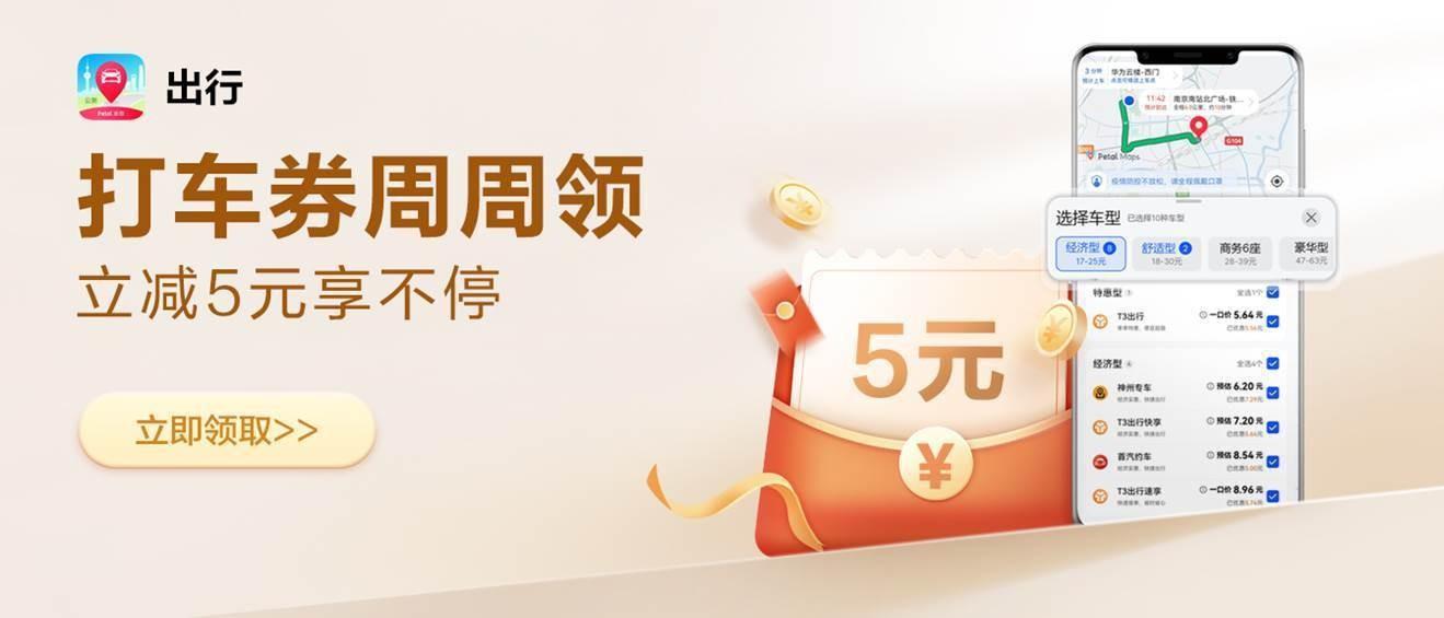 为让更多用户享受全新的智能出行体验,Petal 出行联合华为支付,推出多项惊喜优惠活动: