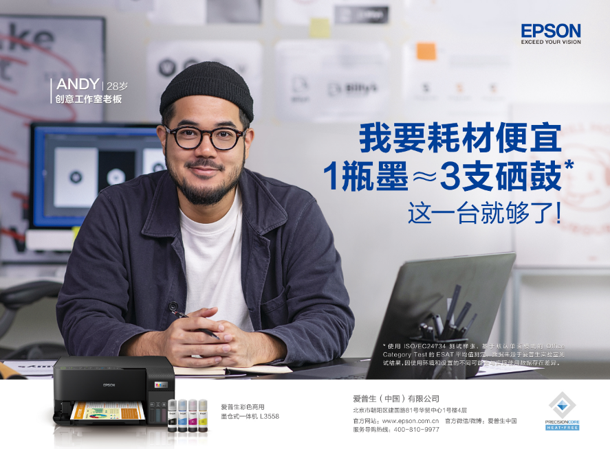 近几年,经济下行压力比较大,在这样的大环境下,很多行业都不同程度受到了影响,小微企业、初创公司对成本有着更大的需求。爱普生全新推出彩色商用墨仓式?一体机L3556、L3558系列,为成长型企业给出全新打印选择方案,在彩色打印、输出速度、打印成本、便捷易用方面有着惊艳表现,加上爱普生"Heat-Free冷印"技术加持,环保安心办公打印,这一台就够了!