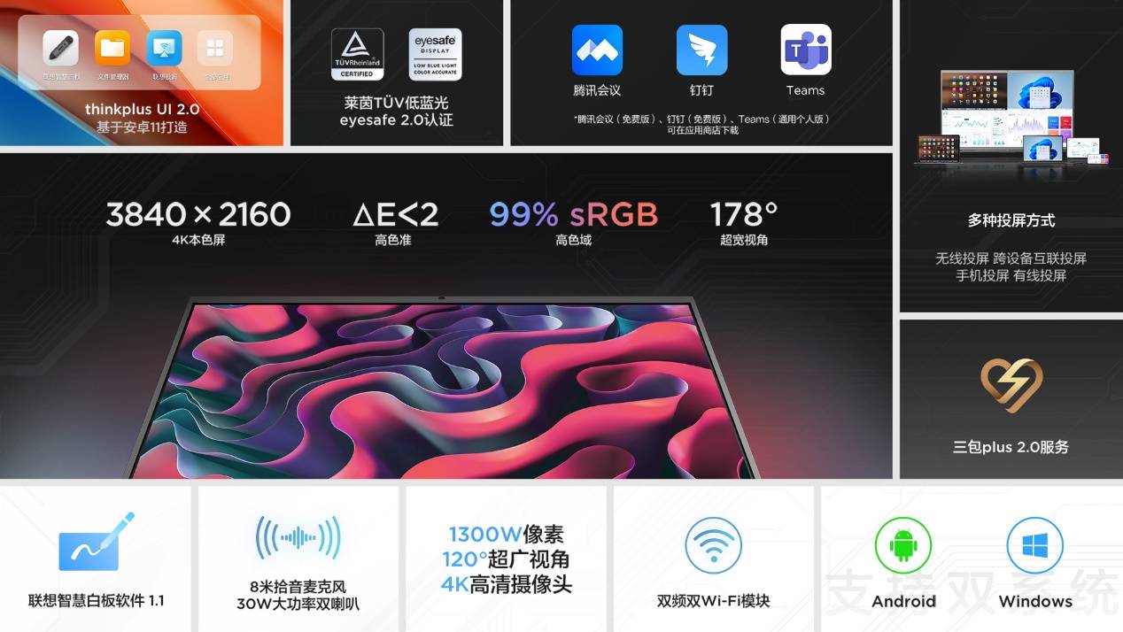 作为混合办公的“枢纽型核心设备”,联想thinkplus会议平板产品承载着提升本地协同效率与远程高效链接的使命。前两代一经推出,便受到市场热捧,并在2022年底正式跻身中国市场前三名。在本次发布会上,更重磅发布了第三代会议平板产品——thinkplus会议平板S+系列。