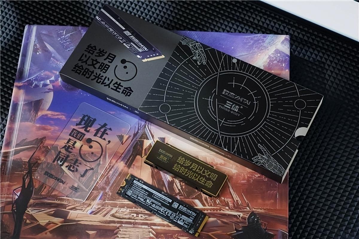 致态TiPro7000三体联名版SSD是致态与著名科幻 IP“三体”联合推出的固态硬盘产品,其一经上市就受到了广大致态粉丝的好评。随着前阵《三体》电视剧的热播,有更多的“三体迷”关注到了这款联名SSD。无论从精心设计的外包装、代表身份认同的三体同志卡,还是表面“雕刻”着三体金句——给岁月以文明,给时光以生命的可拆卸式散热器,都能将人文情怀瞬间拉满,为用户带来仪式感十足的视觉体验。致态TiPro7000 SSD有了三体IP的加持,也让这款产品颇具收藏价值。