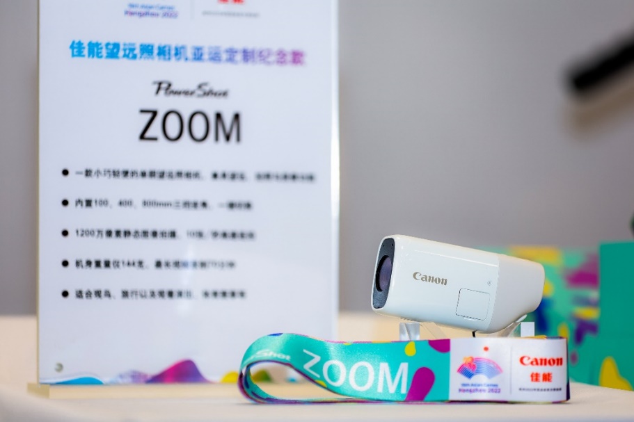 在本次签约仪式上,佳能(中国)还宣布9月1日开始将面向广大消费者发售佳能望远照相机亚运定制纪念款。佳能PowerShot ZOOM作为佳能推出的一款小巧轻便的单眼望远照相机,兼具望远、拍照与录像功能,在体育场看台使用佳能PowerShot ZOOM拉进视角,观众仿佛瞬间进入场地中间,跟随喜爱的选手一起沉浸在激动人心的比赛瞬间。本次发布的限定套装在外观上更具青春活力,套装内包含亚运主题设计挂绳及徽章,既有收藏意义,同时又方便使用者携带观赛,带来更轻松、更沉浸的亚运观赛体验。