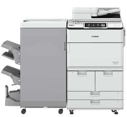 在进纸方面,iR-ADV DX8900系列主机自带四个纸盒和一个多功能进纸盘,提供4360张纸(80gsm)的供纸容量;搭配侧纸仓后,最大可提供7860张的进纸容量,满足用户大批量打印的需求。
