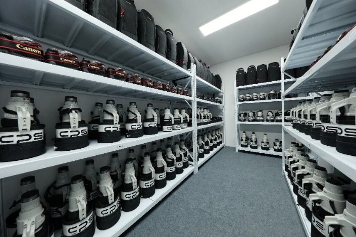 位于HB(电视主播机构)的广播电视器材库房内,HB摄像团队人员在现场借用佳能最新的4K专业数码摄像机XF605