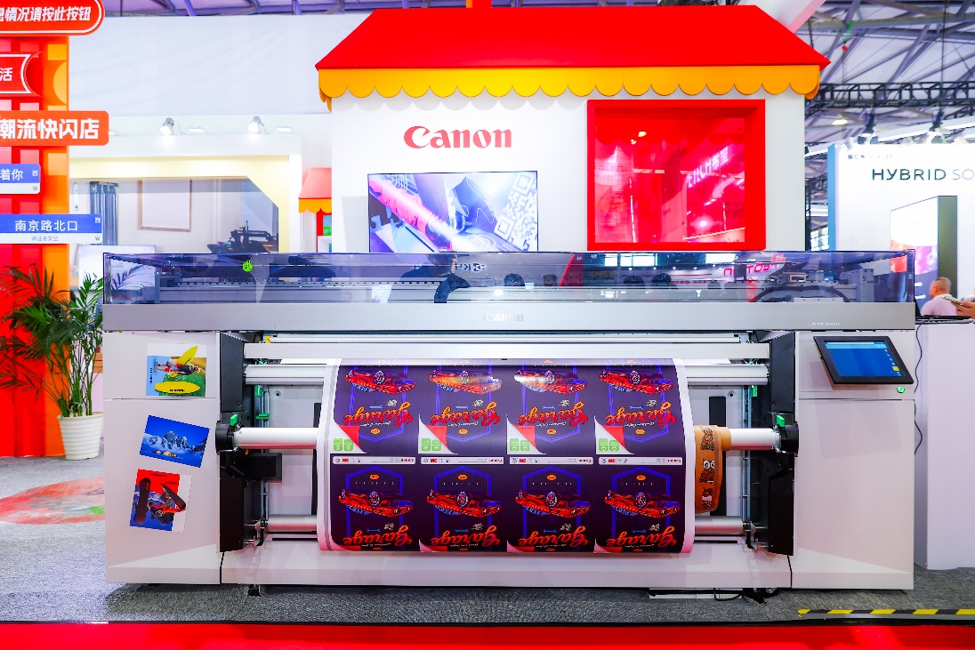 随着疫情后经济的稳步复苏,办公、教育和娱乐等各种社会活动不断增加,广告、标牌、海报和其他多元化印刷品的需求将持续增长。在佳能展台多元化印刷展示区,佳能带来了第一个在速度配置和介质处理方面采用模块化的卷对卷大幅面图形打印机平台——彩浪“梦”系列,成为展台当之无愧的人气王。