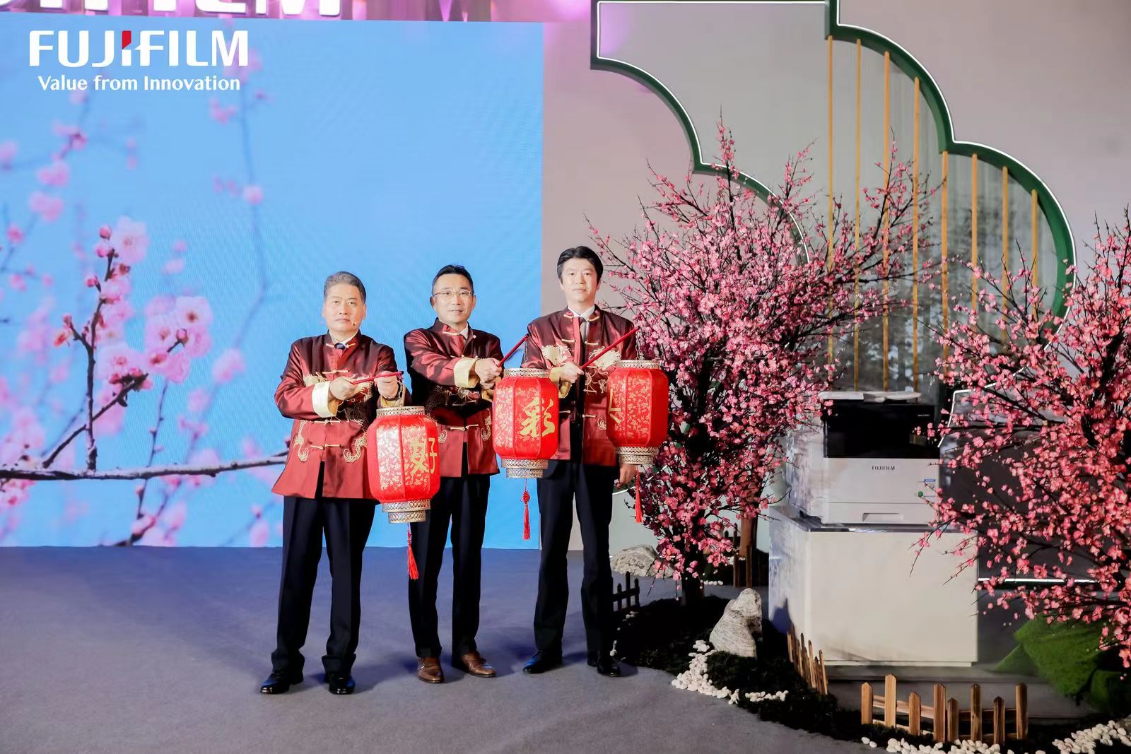 富士胶片商业创新(中国)董事长兼总裁中村达也、市场部副总裁小田和之、渠道销售部副总裁王伟平